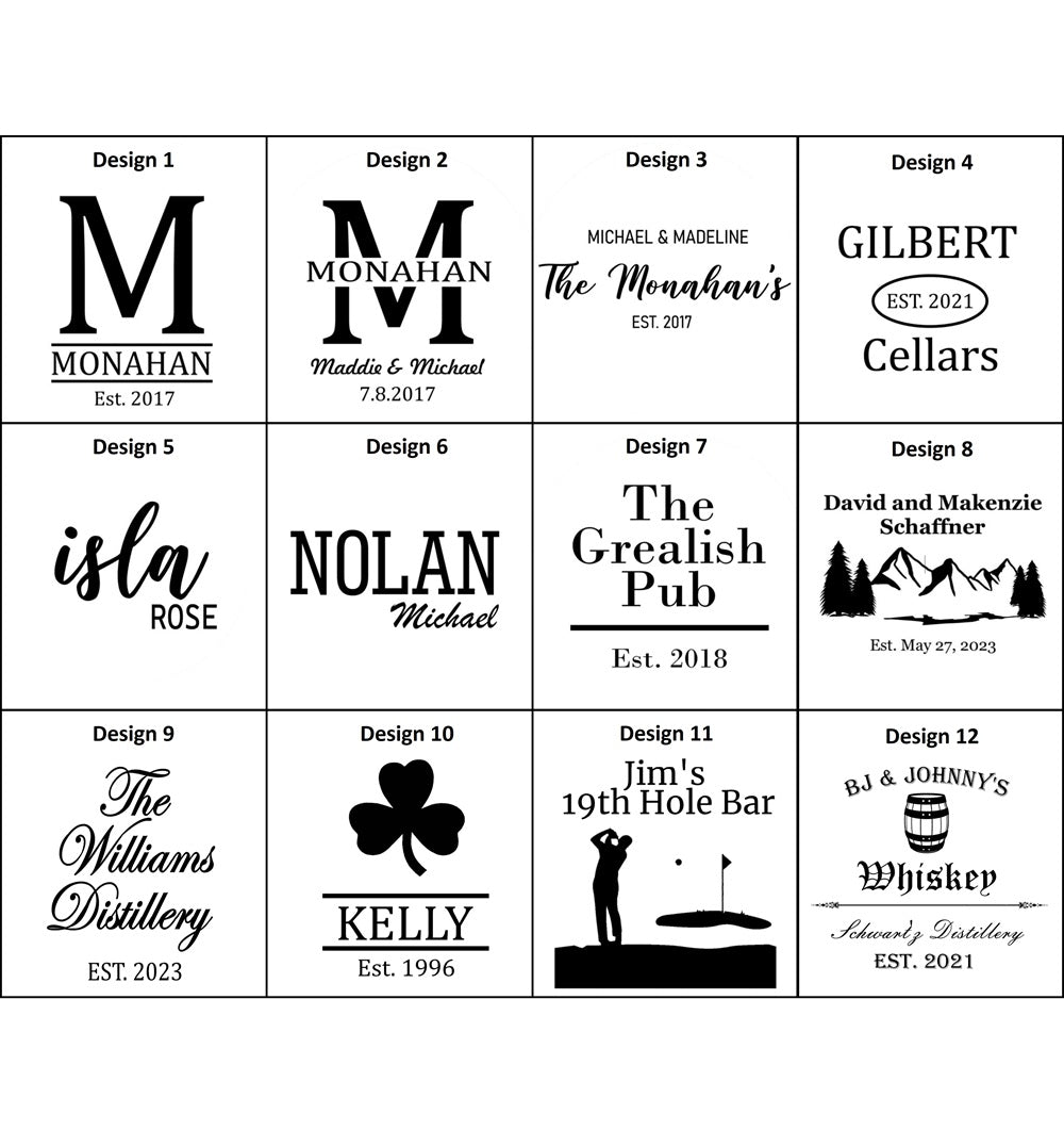 Below are some of the standard engraving designs you can choose from and personalize!
