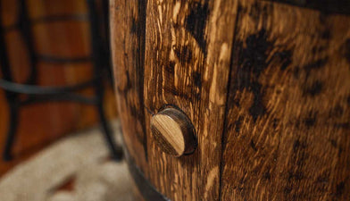Each piece of furniture is handmade with authentic whiskey barrels from brands like Wild Turkey, Four Roses and more.